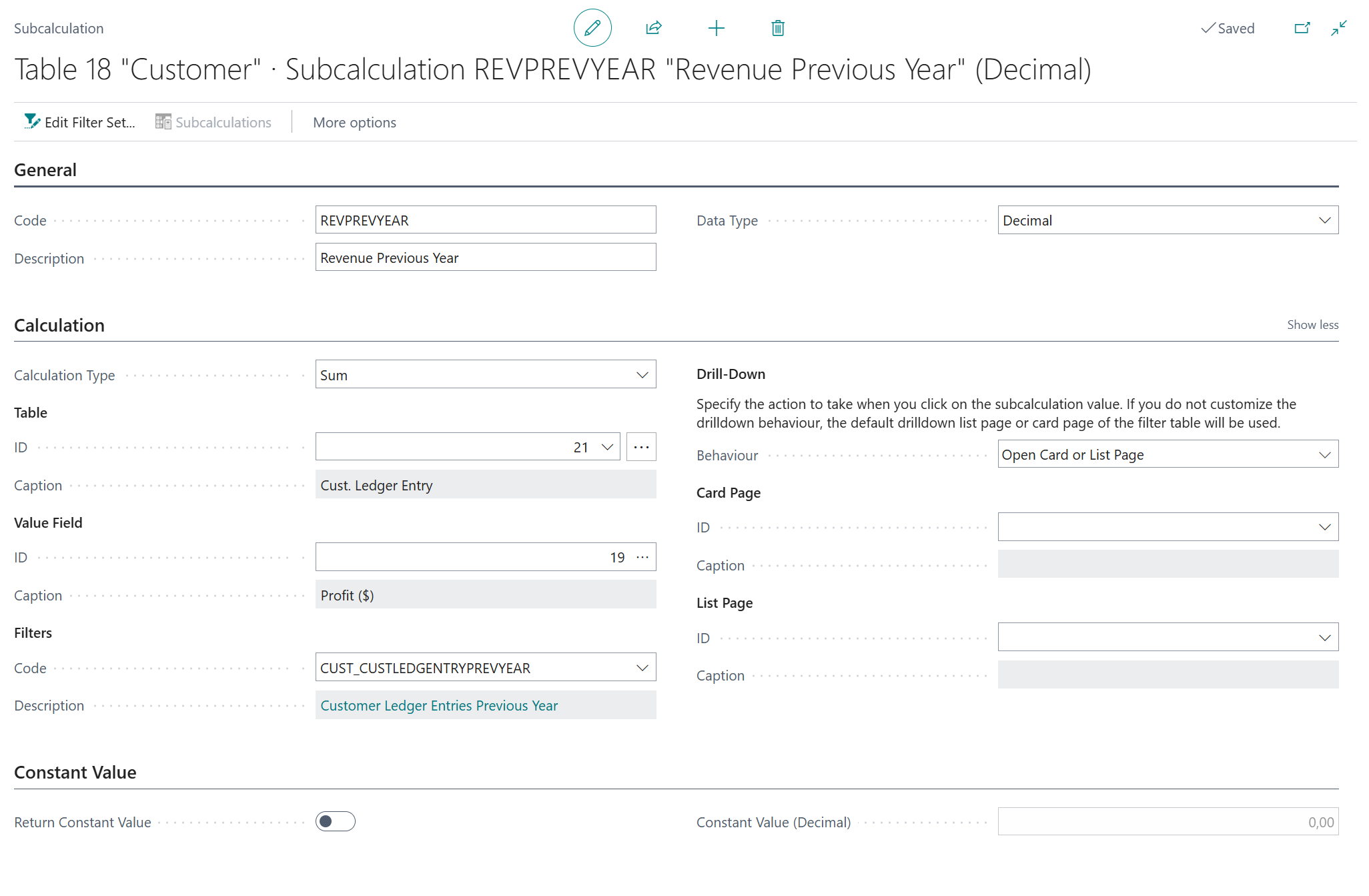 And then, configure the new "Revenue Previous Year" subcalculation as follows: