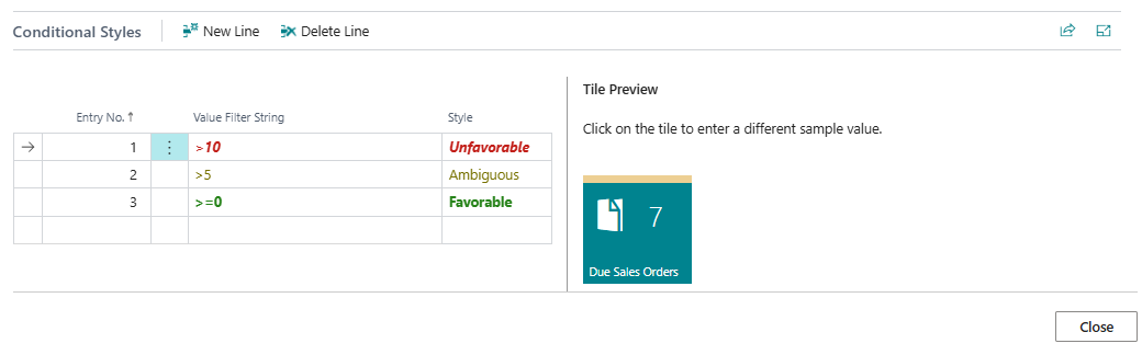 For example, if you have a field/tile to display the number of Due Sales Quotes, it is possible to define a Style (colour) when the count reaches a specific count.